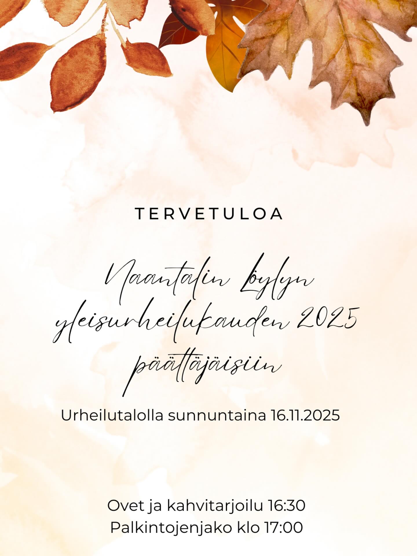 | 16.11. 16:30 | Kauden päättäjäiset | Urheilutalo |